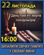 Сьогодні ми вшановуємо пам'ять жертв Голодомору, запалюємо свічку пам'яті та нагадуємо світу: це був геноцид українського народу! Пам'ятаємо...